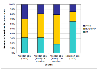 [7] The researchers note there was difficulty determining whether some computers were in low power mode, and that that a number of the research sites use operating systems that do not support power management. This accounts for the high proportion of computers still active at night (Webber et al: 2001).