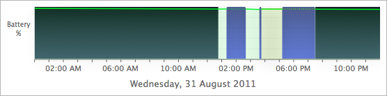 Charted in a beautiful graph, the battery information is colour coded; a green line for when your battery is charging, and an orange line for when it is discharging.